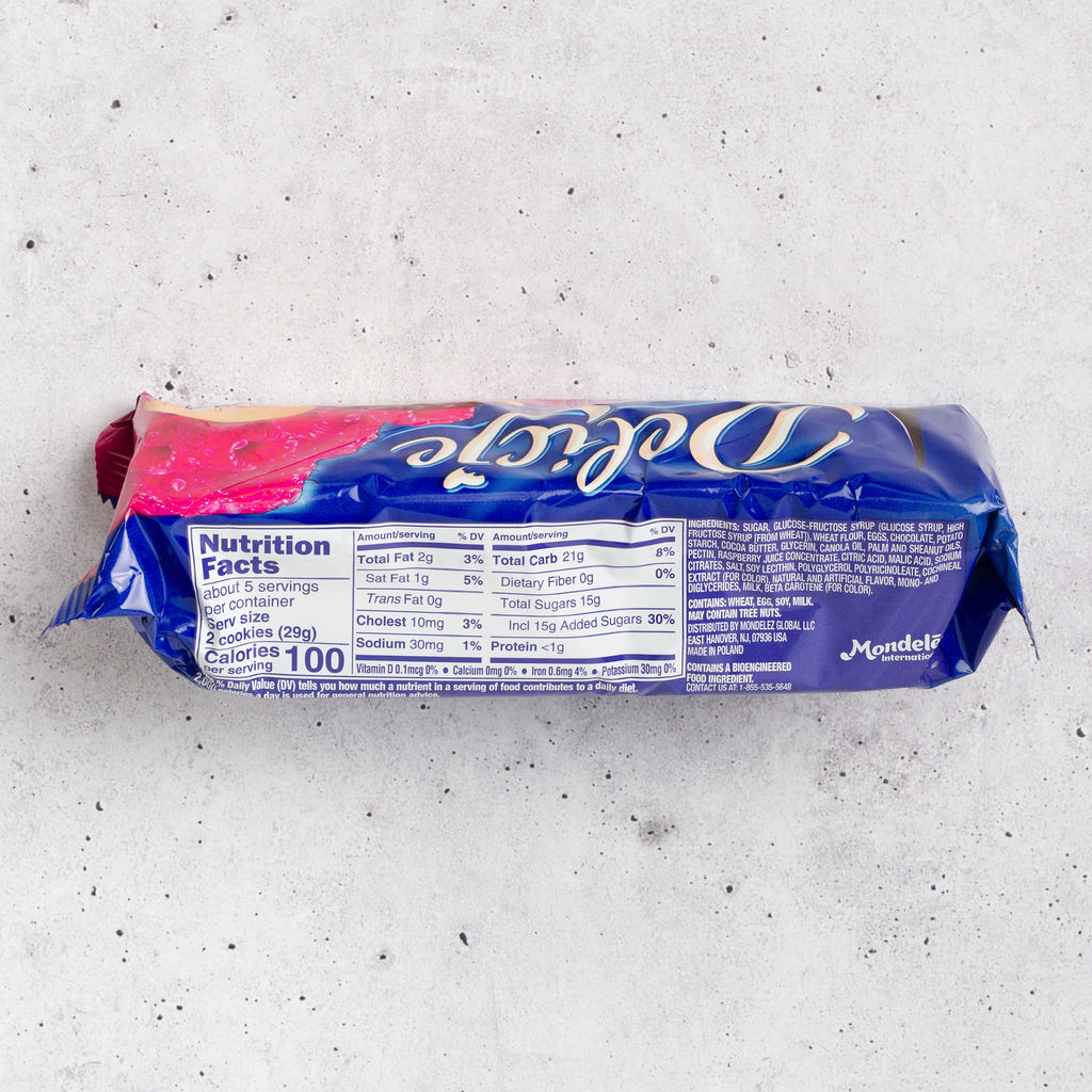 Delicje Raspberry are classic European-style biscuits featuring a soft sponge cookie base topped with sweet-tart raspberry jelly and coated in smooth chocolate. Light, fruity, and perfectly balanced, they are one of Poland’s most popular everyday sweets. The bright raspberry flavor pairs beautifully with rich chocolate, making them ideal with coffee or tea.