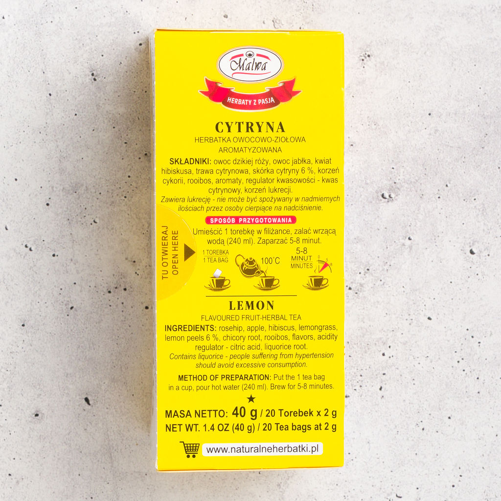 Malwa Cytryna – Lemon Fruit & Herbal Tea (20 Tea Bags)